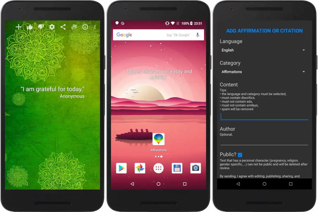Likeable app. and website for every day use, bringing you positive affirmations and pictures, where you can also add yours and make them public and visible for all. The project has been discontinued due to lack of time for further updates.