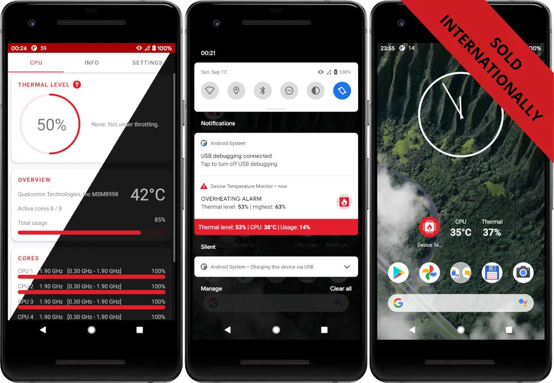 Monitor CPU and device temperature in real time with the CPU & Device Temperature: Monitor & Alarm Android app. It's a user-friendly lightweight application for monitoring device temperature with the possibility of setting an alarm when the temperature is exceeded.